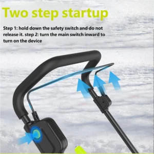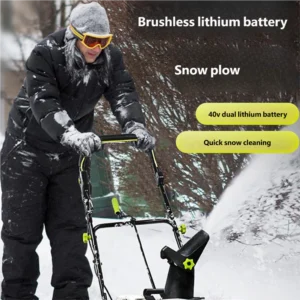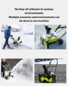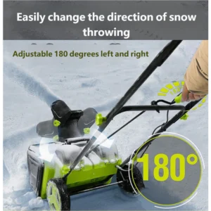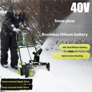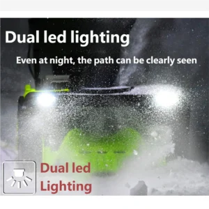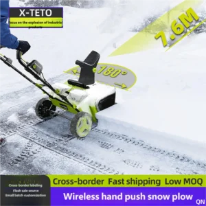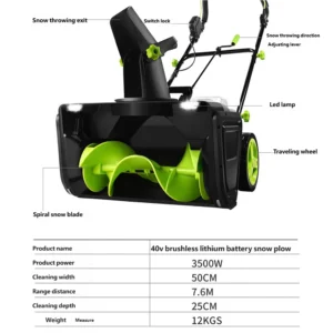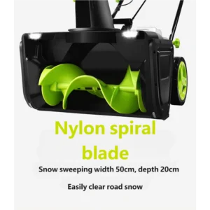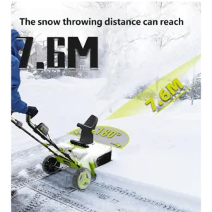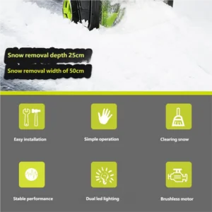 Electric Cordless Push Snow Blower (Small Snow Removal Shovel/Sand Shovel) for schools, roads, and residential areas, featuring a powerful 6.5 horsepower motor. It can throw snow up to 7.6 meters and clear snow with a depth of 25 cm and a width of 50 cm. It comes equipped with 4 backup batteries and 2 chargers. Includes a built-in LED light for nighttime snow removal and offers 180-degree adjustable snow throwing direction.